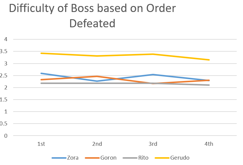For the most part, the difficulty of the boss isn’t affected by the order you face it. The Gerudo boss is still by far the hardest, and the Rito boss tends to be the easiest. The Gerudo boss does tend to be easier as you go through the game, but it’s the only one that shows even a slight pattern like this.